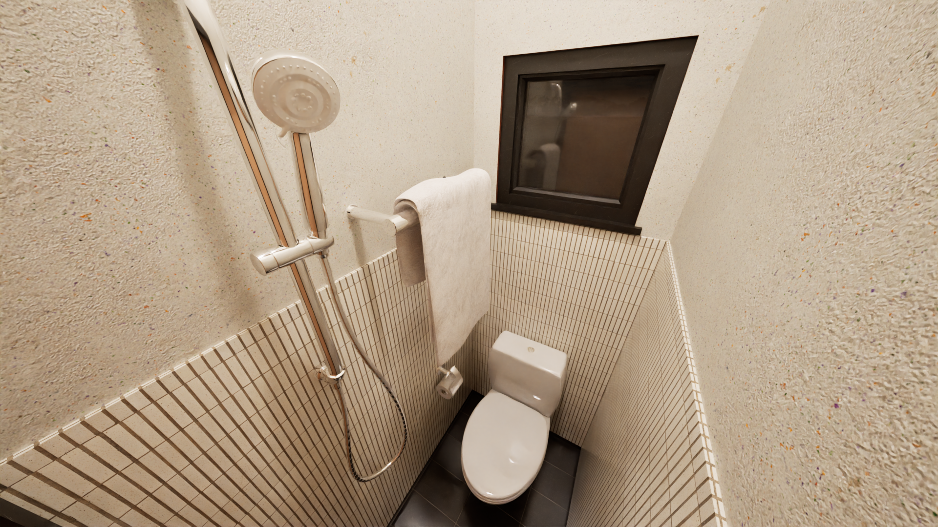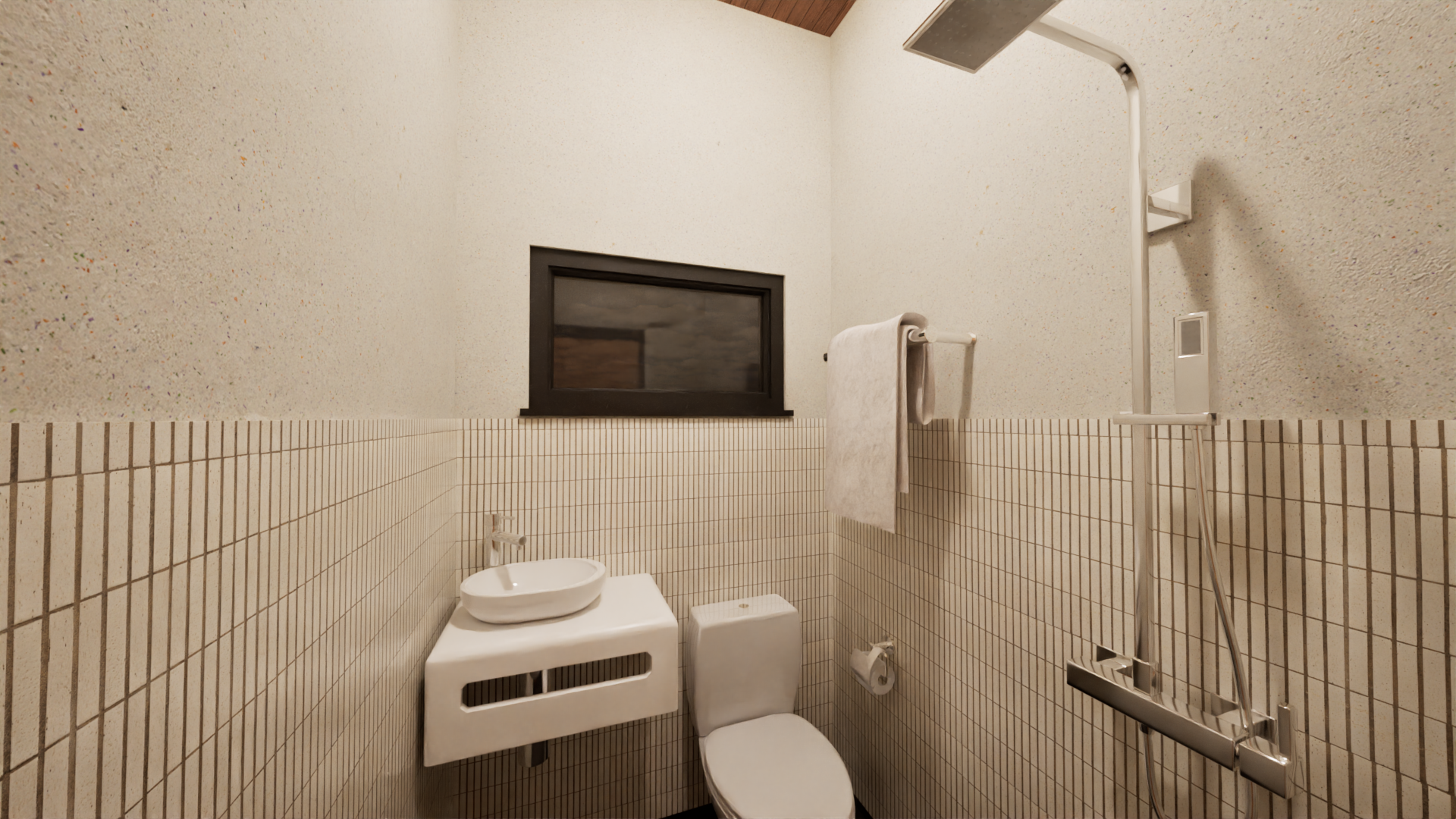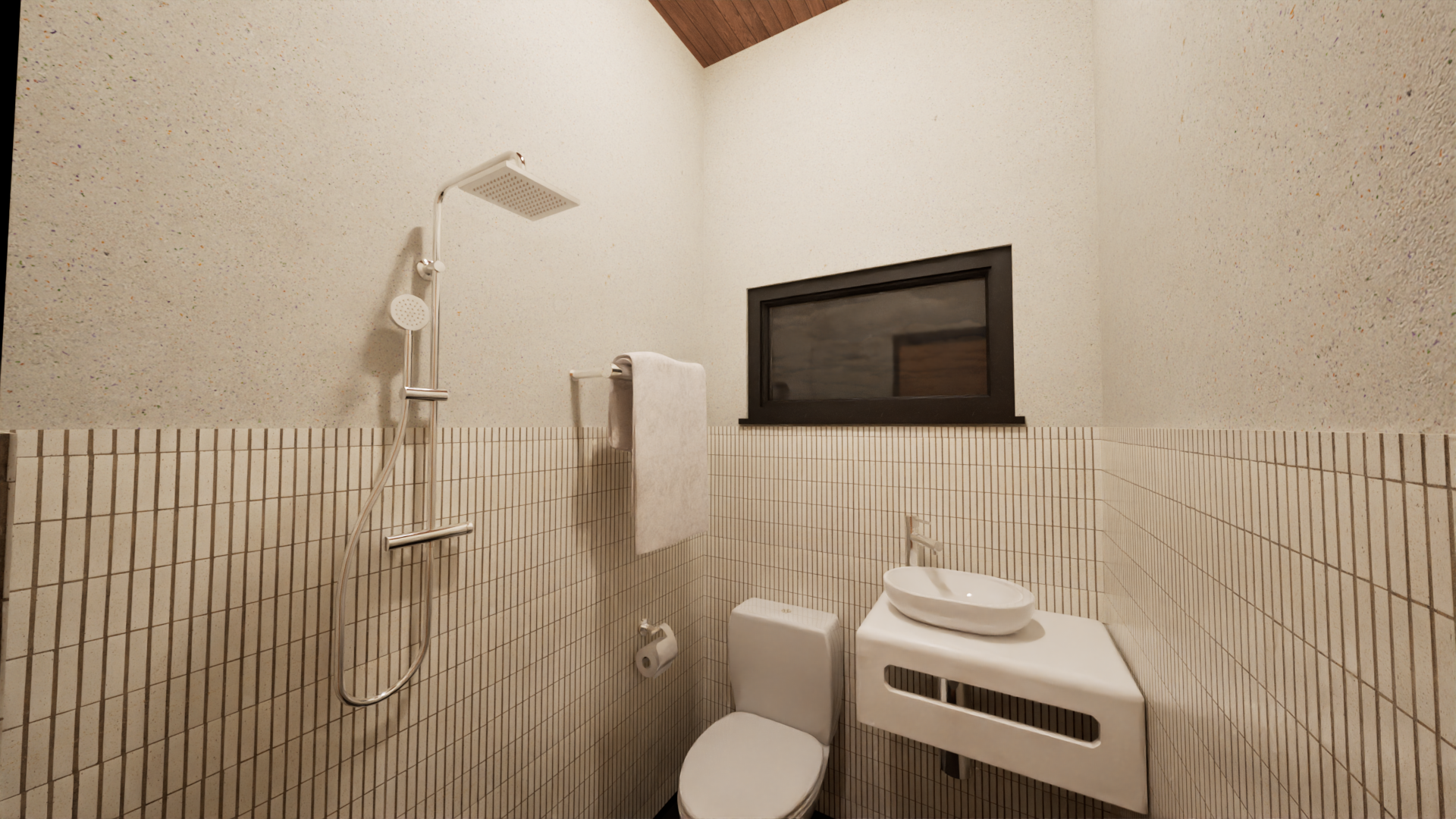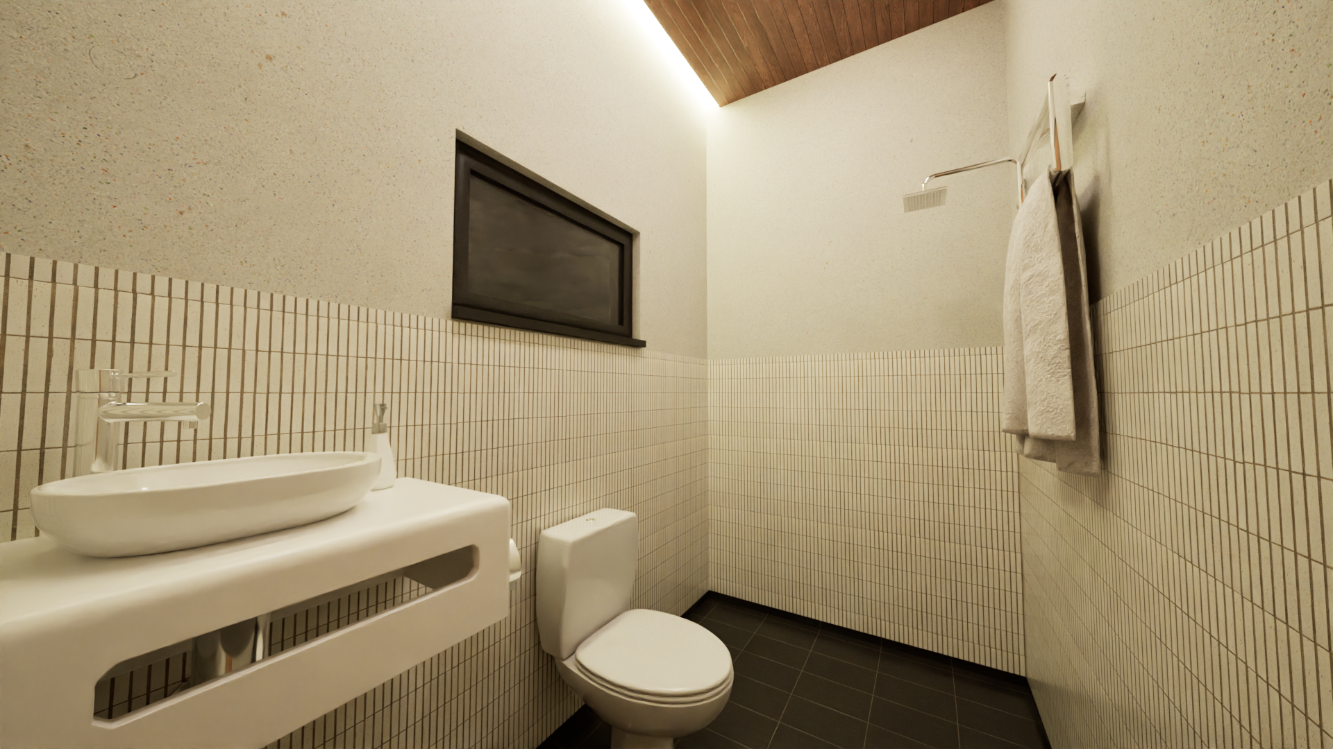 Easily accessible from the lower level, fitted with complete sanitary ware.