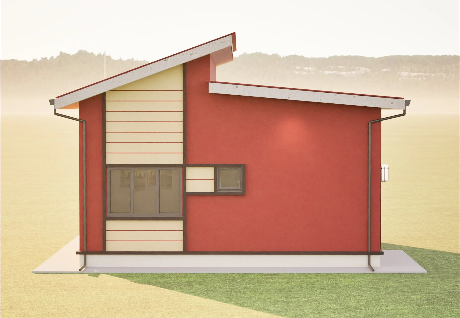 This 30 ft x 20 ft single-storey house is designed with a modern double skillion roof, providing a clean architectural profile, better rainwater flow, and improved natural ventilation. With a well-balanced internal layout, this home offers comfort and privacy while remaining cost-efficient and practical for Malaysian living.