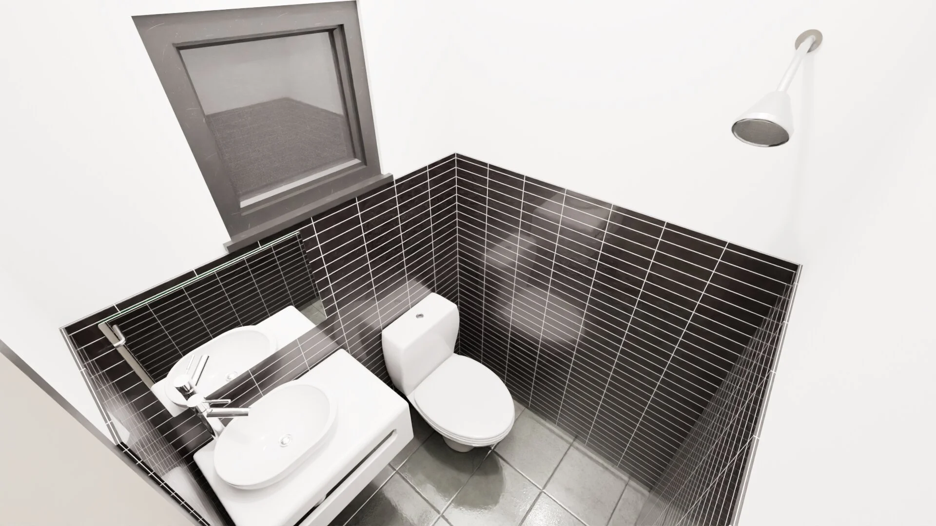 WC set, wash basin, shower set for both toilets